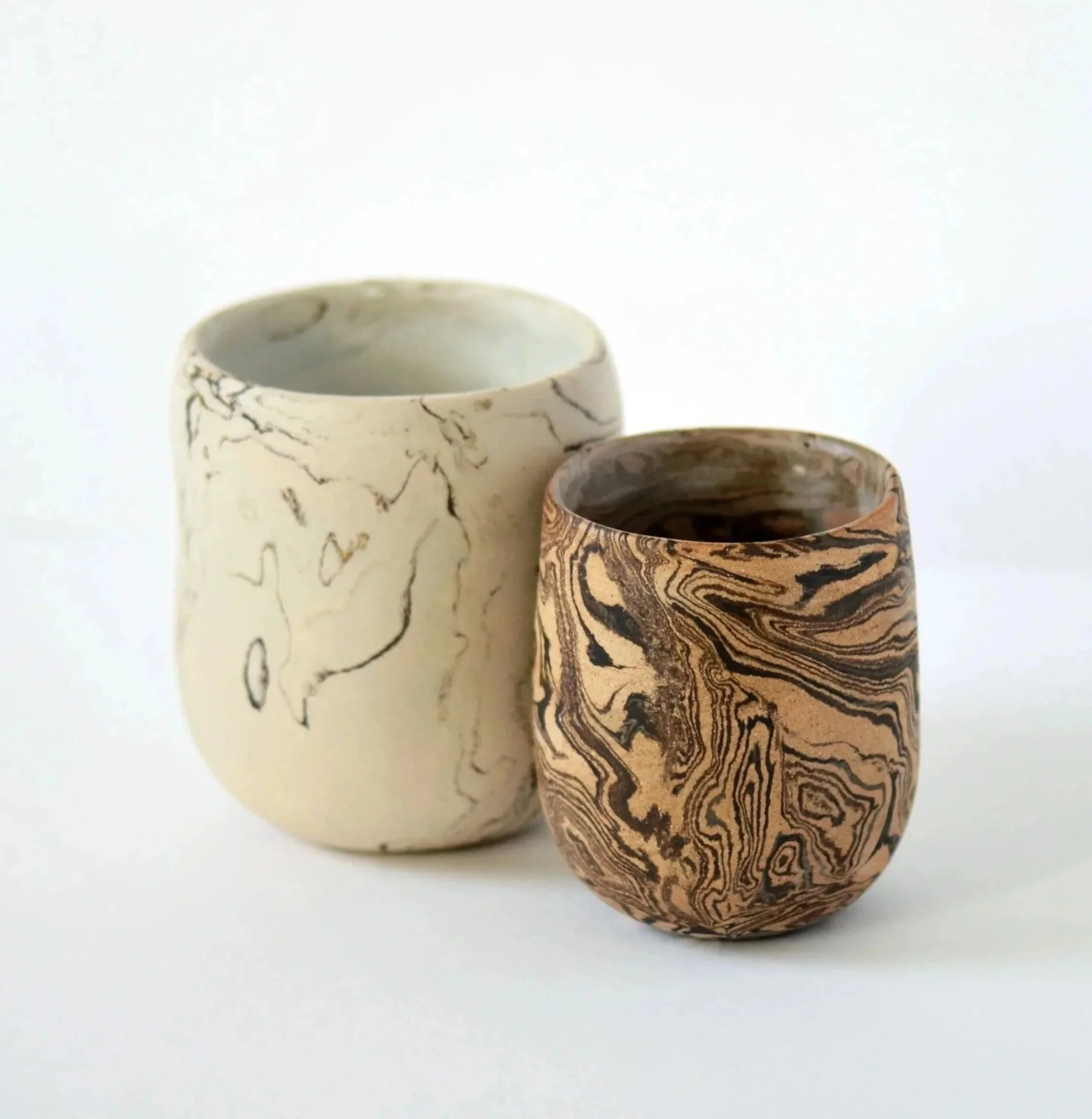 'LinBer', Tasses, Grès - couleurs naturelles, terres mêlées, travail à la plaque, cuisson électrique 1250 °C, 2025, photo Cynthia Nge